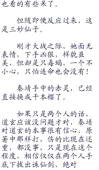 只在瞬间,秦靖就醒悟了这人是谁,差点忘了,青云后殿里,还隐藏着一个大boss级的人物,这人除了当今的道玄外,天下谁还打的过他。
