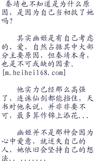 秦靖并没有听出她话里其他的意思,在他看来,以幽姬朱雀圣使的身份,在鬼王宗里一人之下,万人之上,自然是高高在上的。