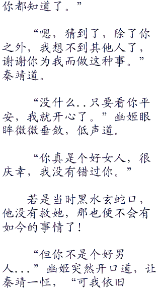 石门打开的动静似乎惊醒了里面的人,幽姬缓缓睁开了眼,“有事吗?”那带着一丝冷意的声音,如同冬夜里滴下的一滴幽泉,幽姬看着门外的三人。