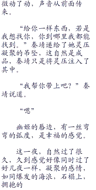 这意味着什么,她自然知道,但总有一种不安,会觉得两人相处时日无多,或许正因为这种消除不去的感觉,才让她不矜持地去死命抗拒吧!