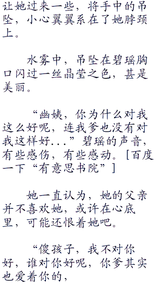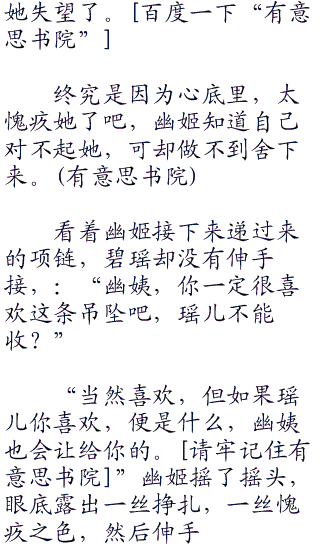 “这吊坠真漂亮,幽姨,你是在哪买的,我也要去买一条。”碧瑶见猎心喜,颇为爱不释手道。