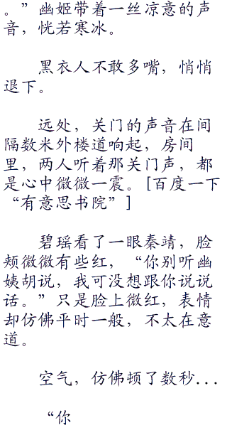 秦靖看了一眼她身后门口站着的幽姬,却不知道是否该真的出去,碧瑶心中一阵焦急。