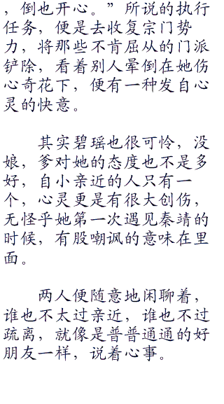 碧瑶并不知道两人间的事情,秦靖是青云的人,幽姬却是鬼王宗的圣使,这般对立的身份,也难为她不为之担心了。