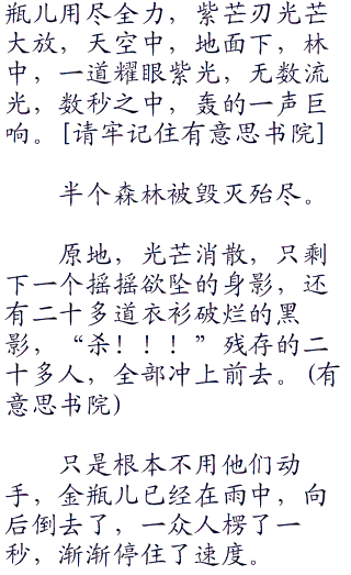 做出防御的金瓶儿双手护着面门,身躯却重重抛起,然后摔向地面,只是临到最后一刻,双脚点在了树干上,才没有直接摔落在地。
