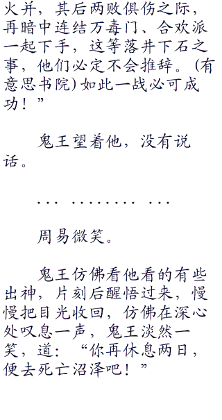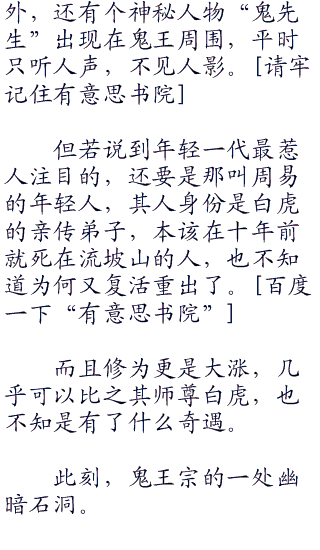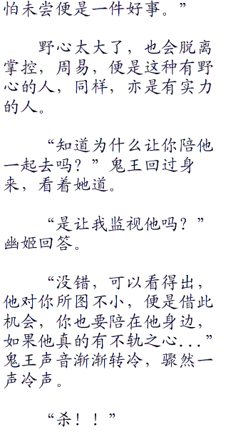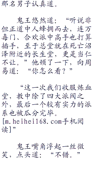鬼王宗本是魔教中四大派阀之一,这十年来宗主鬼王更是励精图治,雄才大略,将鬼王宗调理的日益壮大,隐隐然有取代万毒门成为魔教第一大派系的模样。