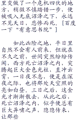 至于西南所在,便是世人谈之变色的巨大死亡沼泽。
