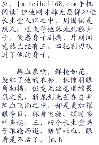 众人大哗,纷纷围上,但林惊羽竟似根本不顾身后袭来的敌人,只目望前方,直冲向人最多的地方,纵横冲杀,锐不可当,所过之处,血肉横飞。