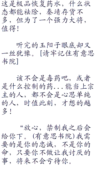 “喝了这个,可以帮你手长出来,喝之前先把愈合的断面清理一下。”秦靖取出了负面状态祛除药水。