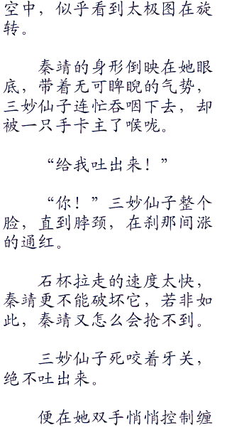 “既然已经看到了天书,就不要妄想再拿走神药。”出现在三妙仙子身旁的秦靖,左手牢牢按在了她握住石杯的手腕之上,带着一丝冷意的声音,分明表明着来人此刻绝对不算上太好的心情。