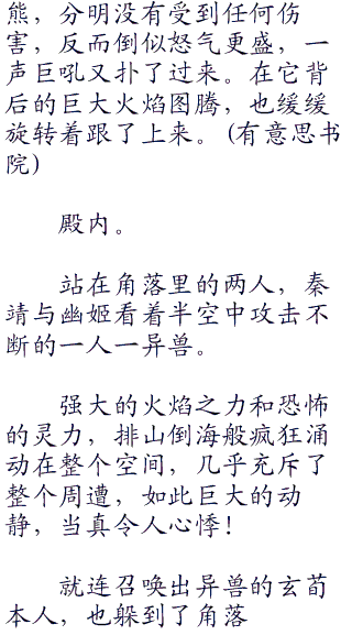 玉阳子这次却没有逃避,事实上这只异兽体积太大,原本宽敞的大殿被它这么一站,也没剩下多少地方。