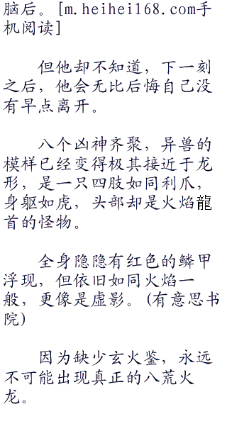 巨大的身子高达数丈,四脚粗壮,末端更有尖锐之极的利爪,在地面上稍一移动,就在坚硬的赤红岩石上留下深深的抓痕。