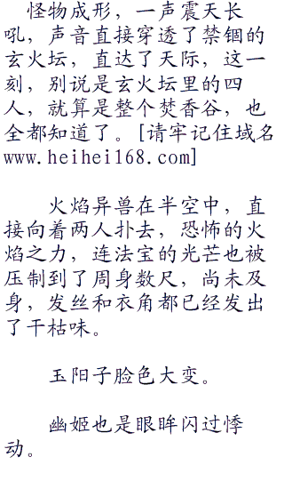 而且,这只异兽巨大身躯的表面之上,赫然到处都是熊熊燃烧的炽热之火,仿佛火焰就是它身体的一部分。还没等它接近,远远的就已经被那股炙热之气给喷的无法忍受。