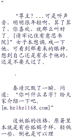“那公子,能否告诉我,小六他现在人在哪里,好久没出来了,我很想他。”仅仅穿着一声单衣,看起来无比诱.人的九尾天狐对秦靖道。