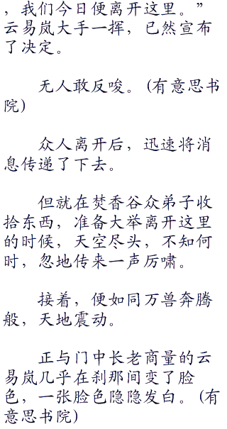 但让人吃惊的,谷主云易岚深思出的决定,非但不是抵抗兽神,反而是大举迁徙,赶往中土。