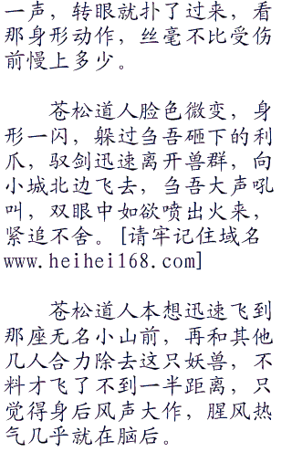 密集的奔跑声越来越近越来越大,终于到了震耳欲聋的地步,越来越多的兽妖从南方涌来,冲向那座小城。原野上的古道和道路两侧宽阔的大地,此刻都已经成了这些兽妖的乐园,红了眼睛的妖物们在震天的嘶吼声中包围了这座小城,来不及逃进城池的可怜人,转眼被妖兽们震起的烟尘吞没,灰色的迷雾中有血光闪动,有尖叫传出,随即湮灭。