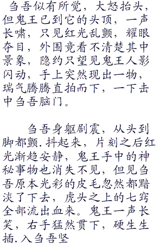 鬼王点头道:“伏龙鼎乃是上古异物,灵力非同小可,连这两只如此灵物都已经被其收服,只要我们再将其他两只灵兽收服,则大事可成。”