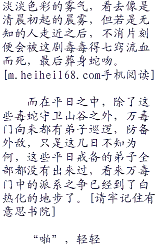 谁也说不清为什么这个山谷之中会栖息着如此众多的毒蛇,数量之多,甚至已经到了树上地下无所不在的地步。只有山谷之中万毒门的那片屋宅所在,因为万毒门密法而令这些毒虫不敢靠近。