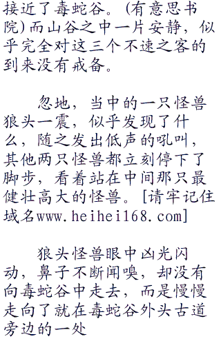 这个庞大的山谷周边都是茂密的古老森林,一年之中的大部分时间,清晨与黄昏时候,林子中都有类似瘴气的毒雾升起,那些其实都是这个山谷中栖息着的无数毒蛇的毒气所聚。
