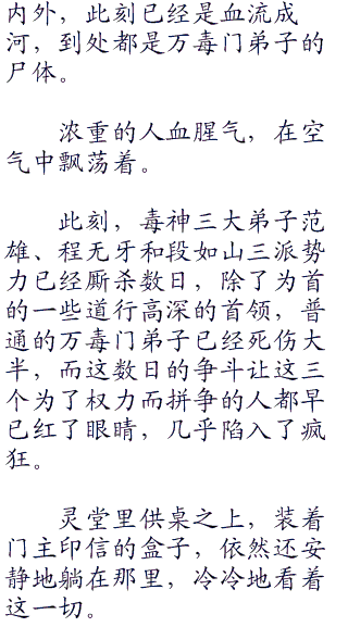 而这些满山遍野的毒蛇也成为了万毒门天然的屏障和取之不尽的毒药宝库。