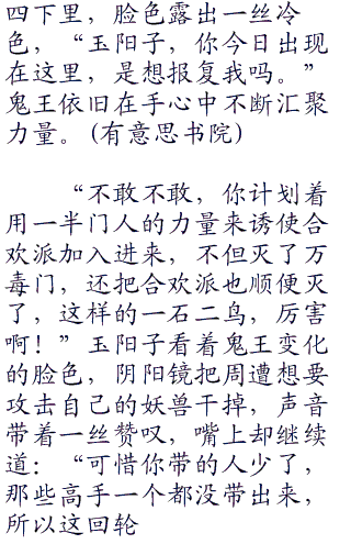 回过身,合欢派的人也差不多被团团围住,三妙仙子等知名的高手也被强大的妖王和兽神盯住,鬼王的眼中带着寒意,嘴角浮现一丝笑意,接着毫不犹豫转身向着秦无炎刚刚离去的方向突围而去。