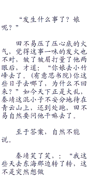 当前天下浩劫在前,谁也不知道那些恐怖的兽妖什么时候就攻了进来,田不易身为青云门领袖之一,自然为此烦恼。