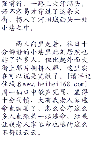 本来在这种混乱情况下,很难保不会发生一些抢掠凶杀等恶事,事情上,也的确不时有这样的传闻,昨日谁谁不见了,今天又听说某人横尸街头,但河阳城毕竟乃是在青云