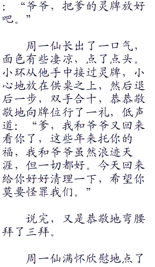 道玄真人沉默不语,凝望那老者许久,然后慢慢走到供桌之前,站在青云门历代祖师灵牌之下,慢慢梃直了身躯。老者走到他的身后,同样的一声不吭。