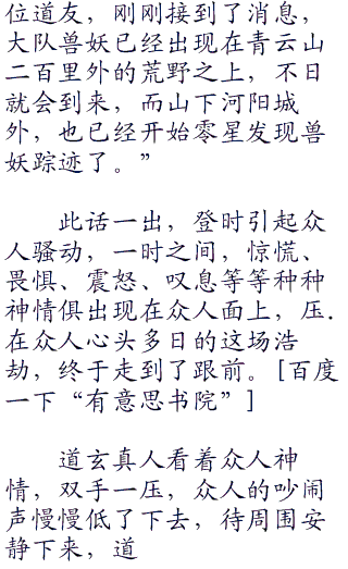 忽地,玉清殿外一阵急.促的脚步声传来,众人一怔,只见青云门下长门弟子常箭快步走进玉清殿中,略一停顿,向周围诸