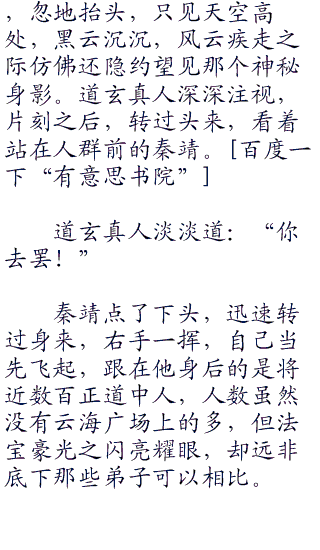 不知是谁第一个呼喊出来,山顶的众人眼尖的都望了过去,只见在那黑云深处,那猎猎风中,有一个身着显眼丝绸衣衫的少年负手而立,面无表情,漠然注视着这一山人们。
