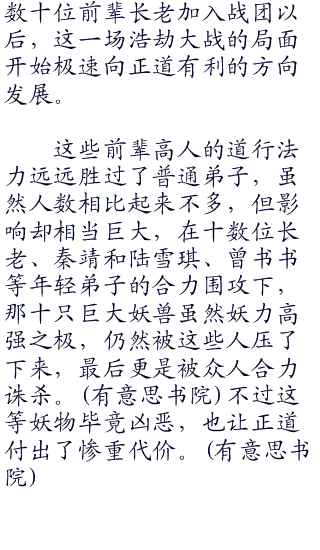 “正是。青云门诛仙剑阵实乃异数,千年之下,仍为世间第一等的超凡道术法阵,正道此番想要获胜,只怕希望都在这剑阵之上,否则也不会有这么许多正道人物,其他地方不去,偏偏都到了青云山来。”