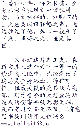谁都不曾想到正道两大门派天音寺的领袖,竟是在这来历神秘诡异的妖人手下吃了亏,一时之间,通天峰头是人人变色。而兽妖那里,则是万兽齐吼,声势气焰高涨。