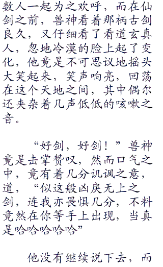 地面上的人们一时震慑,不知其又施展什么妖术,只是自从这兽神出场以来,所施展怪异巫术尽是场面浩大,震动人心,众人心中竟都是暗生畏惧了。