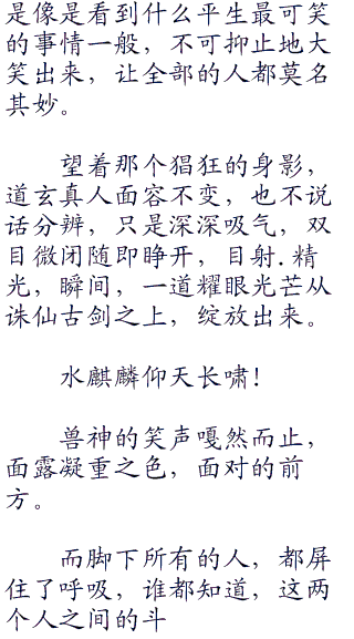 忽而,狂风止,风云静,天地也悄无声息。然后,众人与无数妖兽一般屏住自己的呼吸,目瞪口呆地望着那风云散去,裸.露出来的世间怪物。
