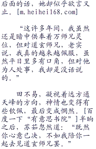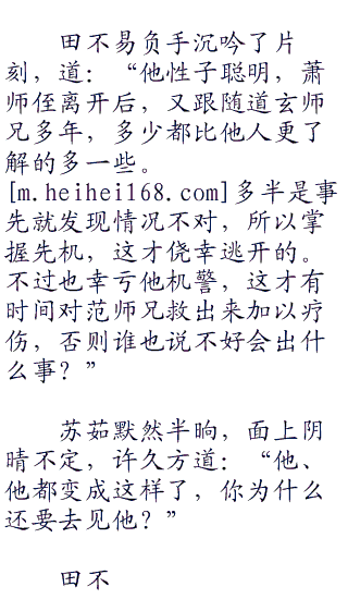 田不易哼了一声,道:“他们还能为了什么,自然是看道玄师兄行径古怪,前去劝告的,听说道玄师兄本来还好好的与他们谈话,但不知怎么突然发怒起来,一掌劈下,登时就将范师兄打的重伤,倒是常箭那小子竟被他逃了过去,反而没事。”