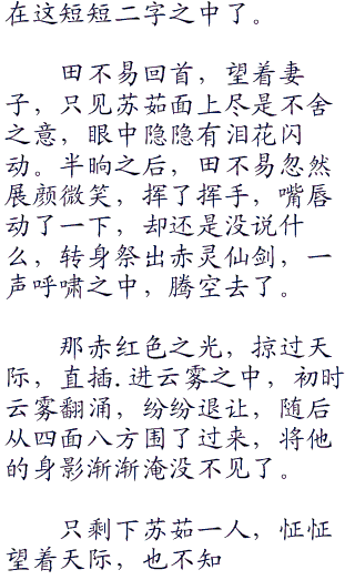 幸好,当秦靖回去的时候,田不易还在,他还没有去找道玄,只是即便到最后,张小凡也没有找到,只知道他连大师兄宋大仁也打伤了。