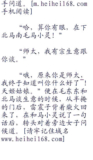 “好了好了,别吵了,未请教这位高人哪?”分开了两人的毛东东拱