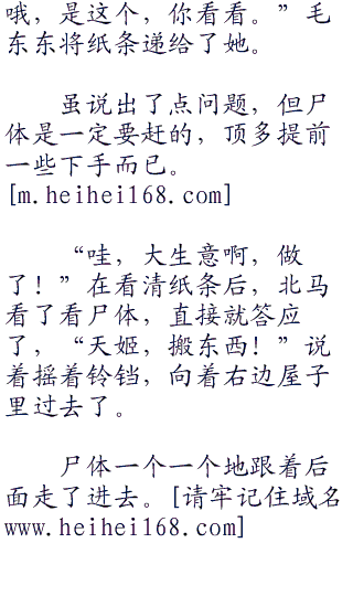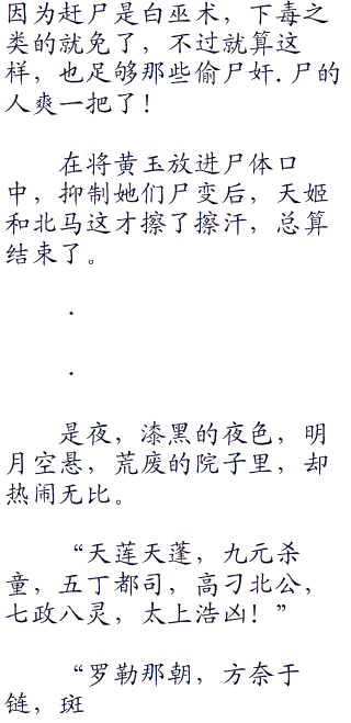 说完的北马直接摇动铃铛,后面的一群头戴黑纱布袋的女尸一个个走了进来。