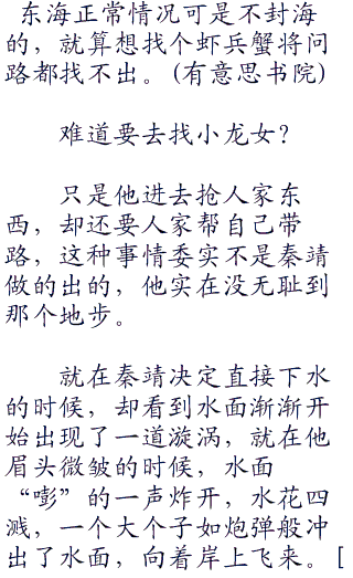 秦靖一路飞到东海,并没有花太多时间,东海离这里一直不远,否则小龙女怎么会出现在长洲府,中间自然是有就近的原因。