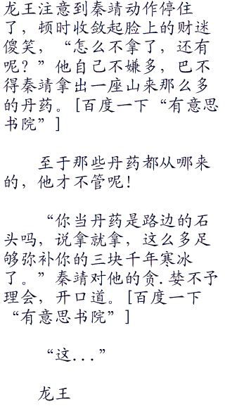 “丹药,你别拿些垃圾来糊弄老龙王我,你能拿出个什么好东西来...”老龙王嘴上不满,手上却一点都不慢。而且眼睛越来越发光。