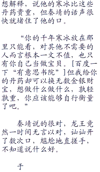 “你吃了我三块千年寒冰,你说换个方式...”龙王当场就想发怒,但随即又强压下了自己火气。