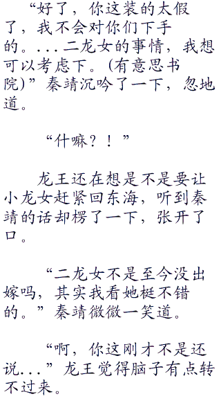 龙王下意识地嘘了口气道,随即一抬头,看到对方正注视自己,又有点尴尬。