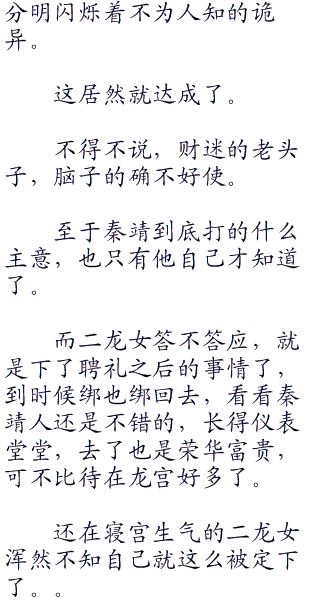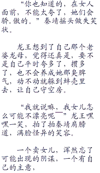 目光从离开的二龙女背影转回,秦靖阻止了龙王的话,微笑道:“龙王,在下刚刚说的不过是玩笑话,龙王莫要当真,在下并非真的对小公主有意。”
