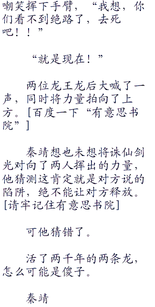 两位龙王龙后望着诛仙凝聚的强势力量,面目闪过一丝狞色,两人一转身,双掌轰的一声对在了一起。