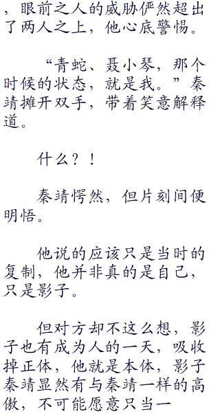 秦靖站在原地,一步也没有退,浓烈的白光再次升起,诛仙再次高高举起,在两人狰狞的面色中秦靖带着