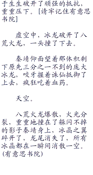 虚空中两声大喝回荡,天空中一只冰龙铺天盖地而下,地面,八荒火龙咆哮而上。
