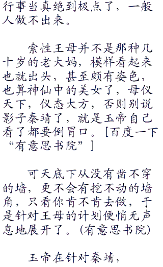 影子秦靖行事从很久之前的某个时刻就看的出来了,绝对比真正秦靖来的豪放多了,他竟然直接打上了王母蟠桃的主意。