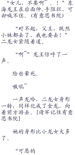 二龙女的心思龙王又怎么可能懂,被抓的烦的龙王也是无可奈何,苦声道:“女儿哇,父王这也是没办法啊,这小子得罪的都是天庭的人,你也不想咱们这龙宫明天就被拆了吧,咱们得罪不起啊~!”