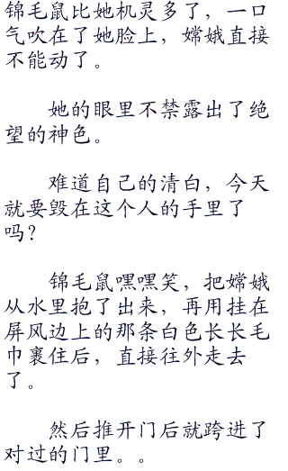 抱的途中还不断挣扎,呜呜直叫,锦毛鼠很不客气地给她屁.股上拍了一下。