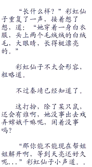 难怪秦靖喜欢她了,长得可真漂亮,连我都有点喜欢了,锦毛鼠嘟了下嘴,然后推开了另一扇门。