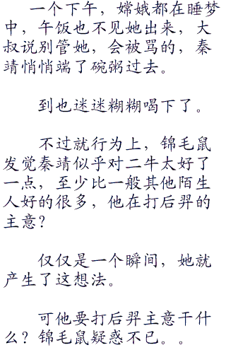 秦靖仔细一看,嫦娥已经闭上了眼,唇齿微微张开。